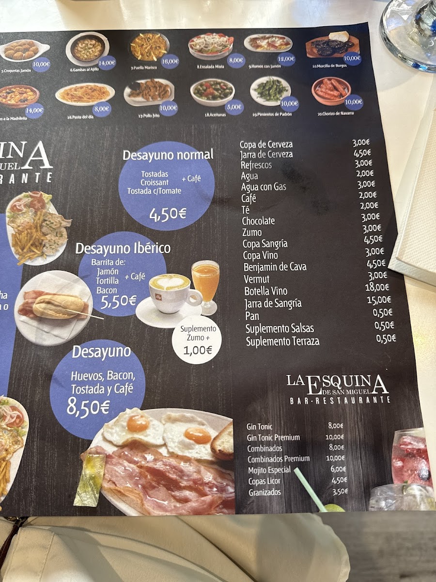 Beyond the food, the ambiance is warm and inviting, perfectly complemented by the friendly staff, including the memorable service from Diana. Whether you’re enjoying a leisurely lunch or a refreshing drink, La Esquina de San Miguel promises a delightful experience, making it a perfect spot to relax and immerse yourself in Madrid’s lively atmosphere.