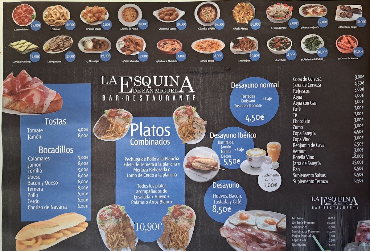 Welcome to La Esquina de San Miguel, a culinary gem nestled in the vibrant heart of Madrid, just a stone's throw from the Royal Palace. This delightful eatery captures the essence of authentic Spanish cuisine, making it an essential stop for anyone seeking to indulge in local flavors. The menu features a variety of traditional dishes, with highlights like their renowned paella and mouthwatering gambas. Diners rave about the freshness of ingredients and the rich, authentic tastes that transport you straight to the Mediterranean.